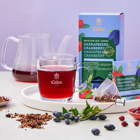 Ein Beerenduo voller Fruchtigkeit - das ist unsere neue EILLES TEE Kreation des Jahres: Haskapbeere-Cranberry.