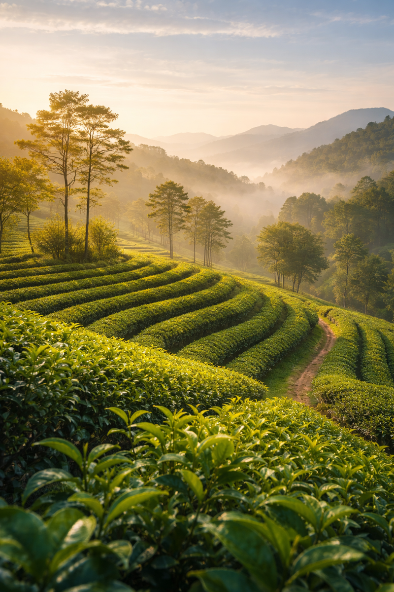 Vom ersten Sonnenstrahl über den Teegärten bis zur behutsamen Verarbeitung der frisch gepflückten Blätter begleiten wir jeden Schritt mit größter Sorgfalt. In ausgewählten, renommierten Anbaugebieten gedeihen unsere Tees unter idealen klimatischen Bedingungen – geprägt von Boden, Höhenlage und jahrhundertealter Teekultur.